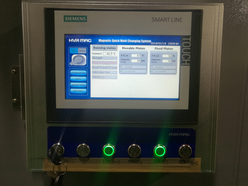 電動永磁快速換模系統主要為傳統的注塑機,沖床,合模機設計,合模時間長,操作復雜,安全性低。 簡單的裝料和消磁動作后,就可以將模具夾緊并更換,確實縮短了換模時間。
